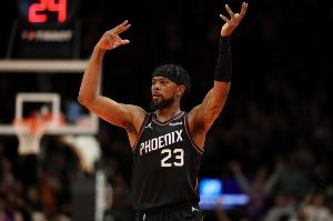 谈及古德温的抢进攻篮板与拼抢地板球的表现时,布克说道:“说实话,我真说不好古德温有什么秘诀。他对篮球有着极强的敏感度,总能出现在最关键的位置。他防守水准很高,总能完成球队急需的拼抢回合,他状态正佳。我和狄龙都在聊这件事,他就是天生对篮球很敏感,总能用各种方式找到球权,这太令人惊叹了。