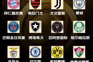帕尔梅拉斯、迈阿密国际、巴黎、博塔弗戈、本菲卡、拜仁、弗拉门戈、切尔西、国米、蒙特雷、多特、弗鲁米嫩塞、曼城、尤文、皇马、新月