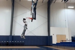 体育资讯6月27日讯 湖人在次轮第36顺位选中了来自阿肯色大学的锋卫摇摆人阿杜-蒂耶罗。阿杜曾在社媒上传过一段秀弹跳的视频,视频中他能够亲吻篮筐。