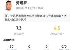体育资讯7月1日讯 国米在世俱杯16强战0-2不敌弗鲁米嫩塞,劳塔罗本场数据如下: