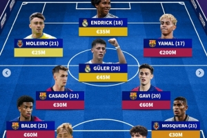 体育资讯7月5日讯 《转会市场》统计了西甲U21球员最贵阵容,巴萨5将在列。