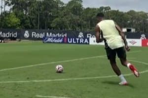 体育资讯7月7日讯 姆巴佩更新社媒,晒出皇马队内训练时自己的射门视频。上一场比赛,姆巴佩对多特刚打入一个精彩的金钩。