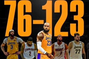 而在这199场比赛中,他所在的球队战绩仅为76胜123负,胜率仅为38.2%。