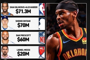 而MLB的最高薪为洛杉矶道奇的大谷翔平,他的均薪7000万美元;NFL最高为达拉斯牛仔达科-普雷斯科特,他的均薪为6000万美元;而美职联的第一薪则是迈阿密国际的梅西,他的均薪是2000万美元;NHL冰球联盟的则是莱昂-德赖赛特尔的均薪1400万美元。
