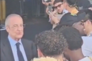 今天,皇马在世俱杯决赛0-4惨败巴黎,尽管遭遇惨痛失利和淘汰,弗洛伦蒂诺赛后依然亲切友善地与所有在体育场出口等候的球迷们交流。