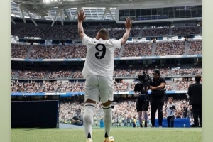 姆巴佩社媒晒出在皇马亮相时的照片,配文:“一年了。感谢大家从第一天起给予我的所有关爱。Hala Madrid !”