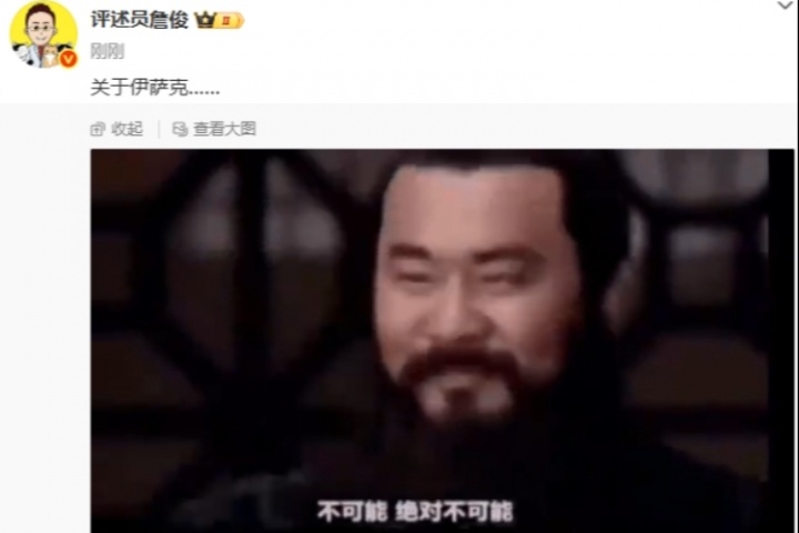 多方媒体记者报道,伊萨克向纽卡表态希望离队,他首选加盟的球队是利物浦。知名评述员詹俊在晒出了《三国演义》中曹操的经典表情包“不可能,绝对不可能”,并配文“关于伊萨克……”