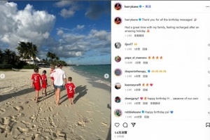 凯恩晒出自己同家人的海边度假照,并配文:“谢谢大家的生日祝福!🎉我和家人度过了愉快的时光,在经历一个美好的假期后感觉精神焕发。”