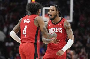 杰伦-格林在2024-25赛季为火箭队打了全部82场比赛,场均得到21.0分、4.6个篮板和3.4次助攻。然而,在季后赛中,他的表现严重下滑,在首轮出局时,他场均只有13.3分、5.4个篮板和2.9次助攻。