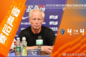 云南玉昆vs上海申花,赛后新闻发布会,云南玉昆主教练约恩-安德森先生点评了本场比赛:“首先,大家晚上好,可以理解,今晚有些人会很失望,今天晚上我们对阵中超最强的球队,我们从三比零,甚至四比二领先,到最后被扳平,可能这是一个不太能让所有人都满意的结果,但毕竟是对战中超最强的队伍,平局我觉得也是可以接受的。