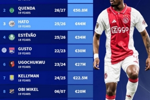 3、哈托(阿贾克斯)4400万欧