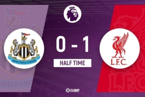 半场-利物浦暂1-0纽卡 赫拉芬贝赫刁钻贴地斩 戈登凶狠铲球染红
