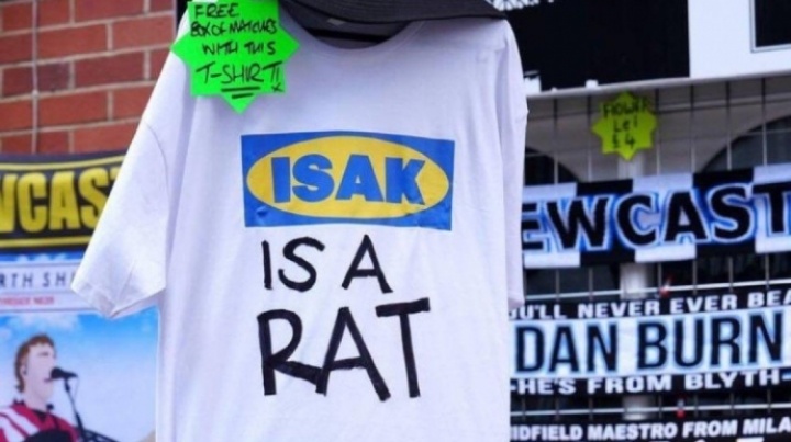 在利物浦对纽卡斯尔的比赛前,圣詹姆斯公园外有人在出售写着“伊萨克是老鼠”的球衣👀