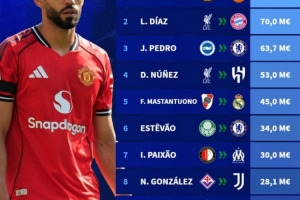 体育资讯8月26日讯 转会市场盘点了今年夏窗截至目前南美球员转会费榜单,其中库尼亚居首,迪亚斯次席,具体榜单如下: