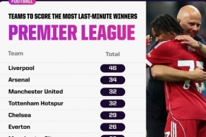 体育资讯8月27日讯 英超次轮比赛,利物浦在客场凭借小将恩古莫哈最后一分钟的绝杀球力克纽卡。在英超历史上,利物浦是最后一分钟绝杀次数最多的球队,达到了46次。