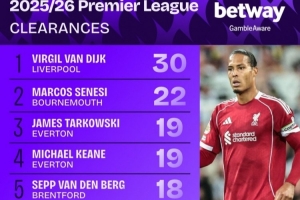 体育资讯8月28日讯 新赛季英超两轮战罢,据Squawka的数据统计,利物浦中卫范迪克在两场比赛中共有30次解围,在所有球员中最多。