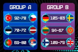 体育资讯08月30日讯 男篮欧锦赛第三日六场比赛全部结束。赛果如下: