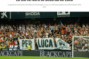 足球是让媒体没有关注的社会议题获得可见度的强大传声筒,今天在梅斯塔利亚球场,由瓦伦西亚北看台球迷组织发起,人们为罹患极罕见疾病的男孩卢卡发声。