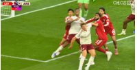BBC的表述是,索博斯洛伊跳起时皮球击中了他,VAR当时进行了介入,没有判罚,VAR没有进行干预。