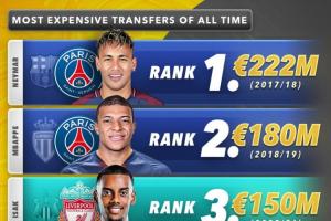 💰足坛历史最贵TOP10:内姆前2,伊萨克跃居第3!利物浦2人上榜