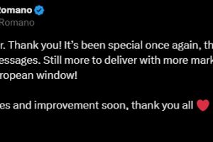 罗马诺:这个夏天太难忘了。谢谢大家!这段经历依旧意义非凡,感谢大家的支持与留言。目前仍有更多联赛市场尚未关闭,我们还有许多工作要推进……但这个欧洲转会窗口已经足够精彩!