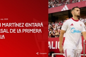塞维利亚发布公告,确认22岁西班牙中卫马丁内斯本赛季将获得一线队号码,为塞维利亚一线队效力。