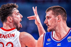 塞尔维亚今天输给土耳其之后屈居小组第2,8/1决赛对阵芬兰,他们和德国男篮同一个半区,如果都一路晋级,那么会在半决赛相遇。