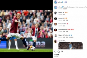 哈兰德也在赛后通过社媒晒出了比赛照,并配文:“感谢奥斯陆主场球迷们的支持,现在专注于周二(的比赛)。”