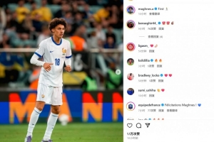 他也在赛后通过社媒晒出自己的比赛照,并配文:“第一次!”而法国队官方社媒也现身评论区送上“祝贺!”