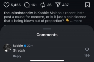 梅努本人却现身评论区回复道:“Stretch(想多了、被过分解读、牵强附会)”。