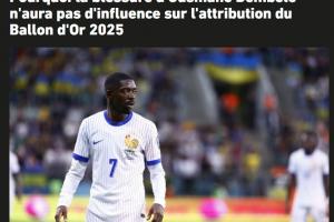 文章表示,今年金球奖典礼将于9月22日举行(北京时间9月23日凌晨),登贝莱目前是金球奖热门候选之一。《法国足球》金球奖评选规则第3条明确规定:“投票参考周期涵盖完整赛季,即2024年8月1日至2025年8月2日,包括在此期间的各项国际赛事。因此登贝莱伤势不会影响本期金球奖评选,评委们投票参考期并不包含球员本月的表现。