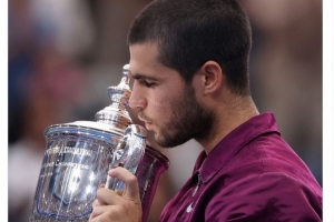 体育资讯9月8日讯 美网男单决赛,西班牙名将阿尔卡拉斯3-1击败辛纳,赢得冠军。
