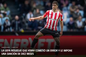 体育资讯09月08日讯 毕尔巴鄂竞技俱乐部官方宣布,球队后卫耶雷因在对阵曼联的欧联杯赛后被查出误服禁药,而被欧足联禁赛10个月。