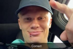 哈兰德最初晒照解释称:“刚刚被大巴车门给撞了👍缝了三针😂”。