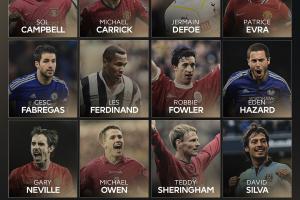 希勒、亨利、坎通纳、罗伊-基恩、兰帕德、博格坎普、杰拉德、贝克汉姆、鲁尼、维埃拉、阿圭罗、德罗巴、孔帕尼、舒梅切尔、斯科尔斯、伊恩-赖特、弗格森、温格、托尼-亚当斯、切赫、费迪南德、阿什利-科尔、安迪-科尔、特里