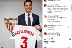 阿斯皮利奎塔自由身加盟塞维利亚,他在社交媒体上晒出展示球衣的照片,并写道:“怀揣着不变的热情与一如既往的承诺,开启崭新征程。感谢塞维利亚的信任。”