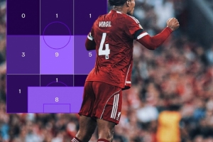 根据Squawka的数据统计,范迪克是本赛季英超首位成功争顶25次的球员。范迪克共30次争顶成功25次,成功率达83.33%。