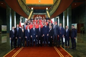 在会见中,总统埃尔多安向国家队球员们赠送了手表,而球员们则回赠了国家队球衣。