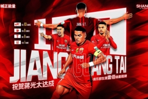 在新赛季亚冠精英联赛首场上海海港0比3神户胜利船的比赛中,蒋光太首发出战,达成其个人代表俱乐部出战各项赛事的百场里程碑。