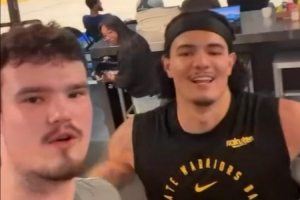 金州勇士队官博晒出桑托斯和波斯特为女武神加油的视频,显示了对同城球队的支持。