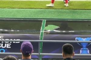 就在国安丢球前的一次防守中,恩加德乌解围击中国安替补席,正好砸穿了替补席的顶棚,碎片击中塞蒂恩头部,塞蒂恩不得不进行止血。