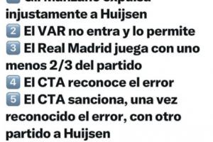 5、在承认错误后,西班牙裁判技术委员会对赫伊森处以一场比赛的禁赛。
