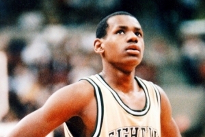 “但我会说,我不确定。我的意思是,我在场上完成一些我本不应该做到的事情。因此当时我就觉得自己很不一般。然后大概在8年级的时候,我去奥兰多参加一项AAU全国锦标赛。我们队有我和其他6个孩子,都来自俄亥俄州东北部地区,其中大部分人来自阿克伦,可能有4人来自阿克伦,3个孩子来自克利夫兰、布雷克斯维尔地区。我们参加了这项大型全美AAU锦标赛,当时有120多支球队在奥兰多的世界体育中心参赛,我们最终取得了第二名。我哥们就说,‘你们拿了第二名高兴吗?’‘高兴啊!’6、7名来自俄亥俄州阿克伦市的孩子,我们输给了一支来自南加州的球队。在那届锦标赛中,我在做到一些前一年夏天我从没做到过的事情,我终于开始在比赛中完成扣篮,我们开始赢下一些本不被看好赢下的比赛。我在场上完成一些一两周前还在梦想做到的动作。我心里就想,‘靠,这一切正在发生。’”我觉得就是那时候吧。”