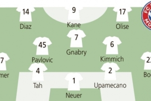 体育资讯9月20日讯 拜仁即将对阵霍芬海姆,德媒《慕尼黑日报》也预测了拜仁的首发阵容,莱默尔改踢左后卫,若纳坦-塔和博伊出战。