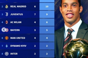 2、皇马 6人10次