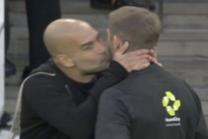 体育资讯9月22日讯 阿森纳vs曼城第90分钟,瓜迪奥拉场边和裁判交流,还亲了一口裁判的脸颊!
