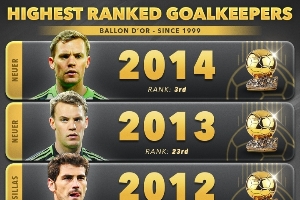 本世纪门将金球排名:06年布冯第二 卡恩两度第三 14年诺伊尔第三