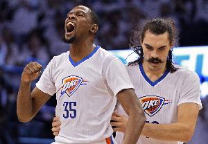 亚当斯与杜兰特曾在雷霆当过3年队友。