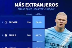 体育资讯10月14日讯 根据德国转会市场的数据,本赛季五大联赛英超外籍球员占比最高,西甲外籍球员占比最低。