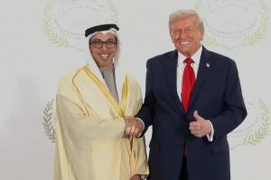 体育资讯10月14日讯 美国总统特朗普会面了阿联酋副总理曼苏尔,特朗普与其握手时笑容满面:“非常多的现金,无限的现金,非常好的人。”